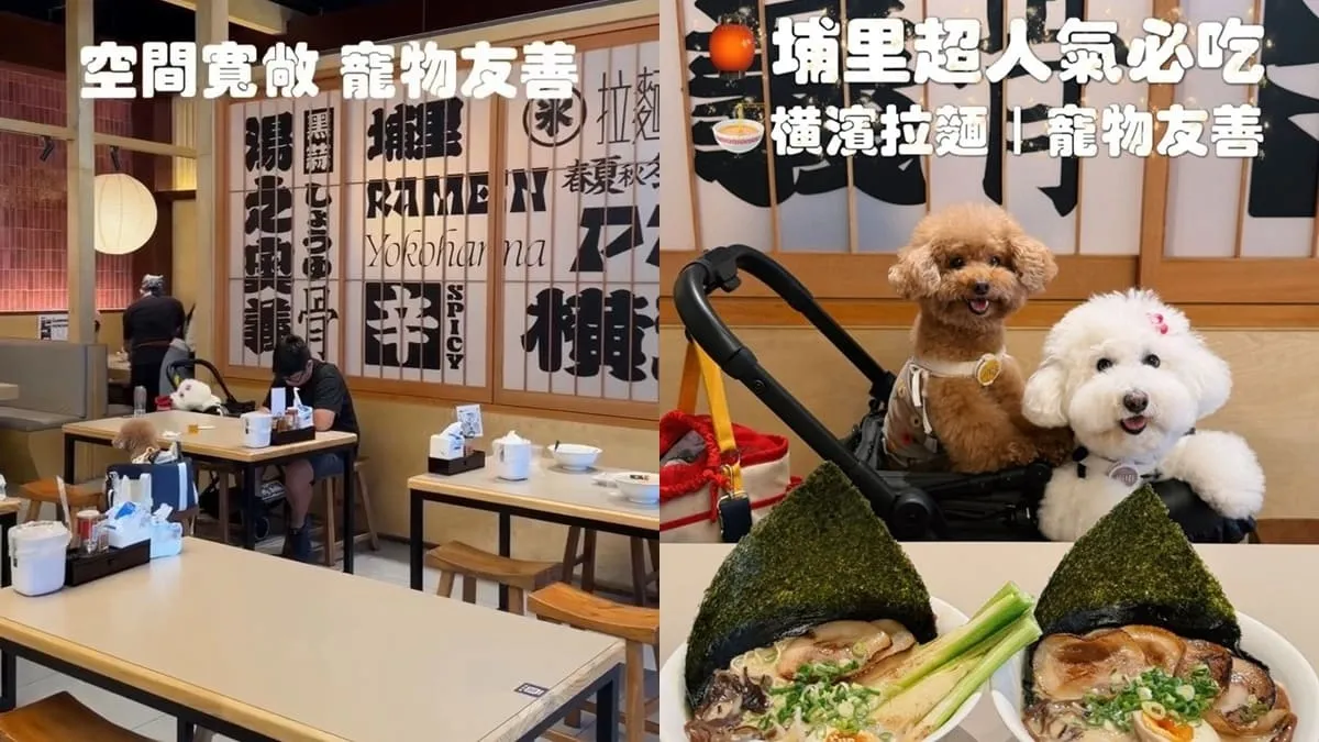 身為常帶小飛哥、小熊妹趴趴走的寵物友善生活探索家,我一直在找「毛孩也能舒服陪吃」的熱門餐廳。這回來到南投埔里的橫濱拉麵新店址,木造裝潢、挑高座位區,加上店門口與特約停車場的停車優勢,整體動線對推車族非常友善。店內主打茭白筍拉麵、塩豚蔥花拉麵與豚骨叉燒大蒜拉麵,豚骨湯頭濃度調整得很符合台灣口味,再加上內用第一次免費加麵的制度與自助飲料、小骨湯區,對愛吃麵又帶狗狗旅行的族群來說,是一間可以列入埔里行程清單的寵物友善拉麵店(以官方公告為準)。